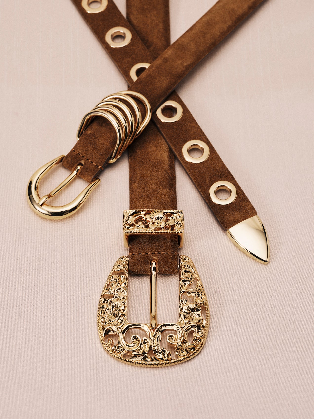 Filigree hardware is conceived as an object rather than an accessory, designed to sit at the waist with weight. Enamel is introduced through layered, hand-applied applications. Built up and fired for permanence, it creates moments of saturation and depth that heighten the collection’s sense of decadence. The palette is anchored in warmth. Luminous gold, burnt marigold tones, and deep chocolate hues create a feeling of richness and indulgence, grounding the collection while amplifying its sensuality.